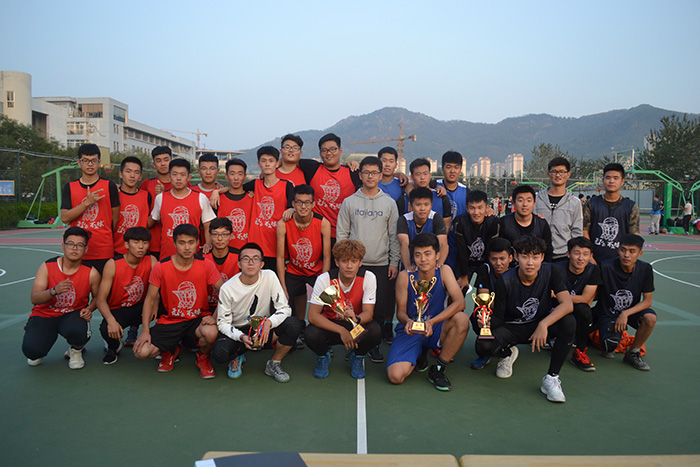 随着裁判员的一声哨响,比赛正式开始,双方迅速进入状态,在场上你争我夺、你攻我守。第一节结束时双方以16:16稳住局势,比赛双方平分秋色。随后,机械中韩队利用发球权优势发动进攻,油储、新能源、机械3+4队不甘示弱出色防守,比分交替上升,差距略微拉开。下半场比赛,机械中韩队步步紧逼,比赛进入白热化阶段。末节结束,双方42:42再次打平,两支队伍进入激烈的加时赛。队员们全力以赴,观众看的如痴如醉,忘情地呐喊。终场哨声响起,机械中韩队以三分的优势赢得比赛的胜利。胜败乃兵家常事,两支队伍以他们精湛的球技和拼搏的精神给人带来了一场视觉盛宴。最后,ok138太阳集团中国官方网站分团委曲志强老师对活动进行总结与点评,紧接着ok138太阳集团中国官方网站分团委赵宗祥老师分别为冠军机械中韩队,亚军邮储、新能源、机械3+4队,季军Alps、船舶队和MVP球员孙新凯同学颁奖。至此,2017级ok138太阳集团中国官方网站"迎新杯"篮球赛决赛落下帷幕。