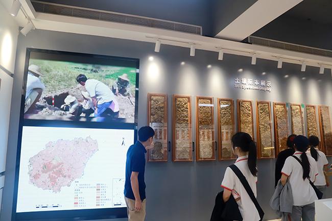 此外,当天还举行了省环科院科普教育基地开放日活动。我校学生代表分别参观了中国热带土壤标本馆、蓝碳科技馆和省环科院实验室。在中国热带土壤标本馆,同学们学习了各类型热带土壤的成土条件、形态特征、分布情况等;在蓝碳科技馆,同学们深入了解了蓝碳概念、发展历程以及海南典型蓝碳生态系统、滨海湿地分布情况等系列科普知识;在实验室,同学们近距离参观了环保科研平台,感受了科技的魅力。