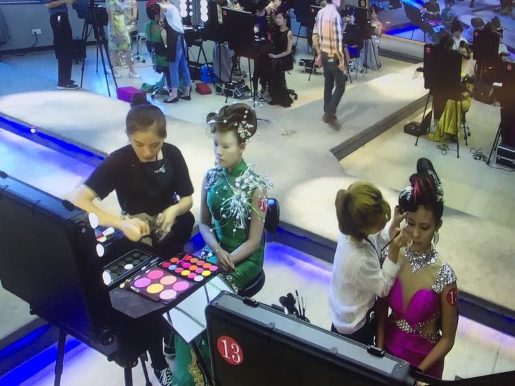 我校16形象设计王悦和邢柔参加晚宴组化妆比赛现场