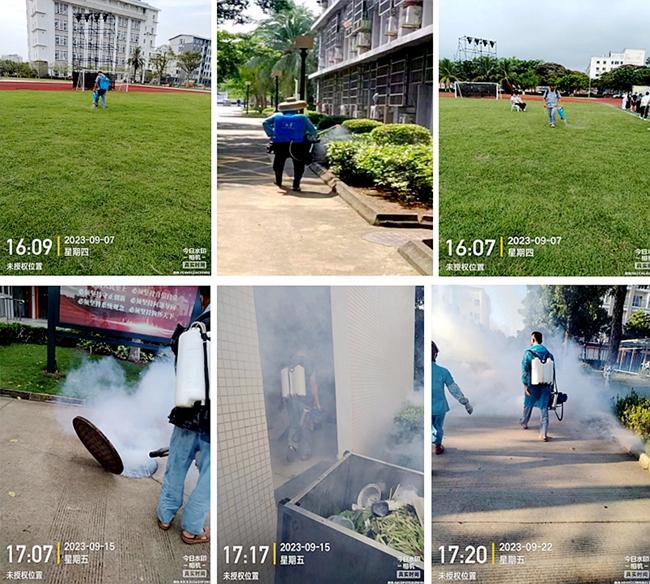 结合实际情况,学校积极发动教职工开展卫生大扫除。以教室、宿舍、公共洗手间、操场、垃圾收集处、绿化带、贮水器、储物间及下水道等蚊虫栖息地和繁殖场所为重点,请防疫专业人员进行灭蚊消杀工作。