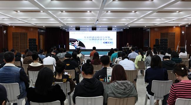 讲座上,金暄副院长围绕专业群建设背景与意义、专业组群逻辑与定位、建设重点与内容、建设成效与思考四个方面展开深入的探讨。金暄副院长指出,专业群建设已成为高职院校办学高质量发展的关键一环,专业聚群发展是必由之路。学校应依照“产业背景相同、专业基础相通、职业岗位相关、教学资源共享”原则组建舞蹈表演专业群,一是以提质培优、增值赋能为主线,集聚课程、师资、实训、合作企业等优质教育教学资源共建共治共享,落实产业化、市场化、行业化的艺术类专业建设新模式,形成“学·演·赛·创”“四位一体”、订单合作、现代学徒制培养的“4+2”育人新格局。二是打造一支“政治素质优、艺术技能优、岗位业绩优、师生评价优”“善教、善培、善演、善创”的“四优四善”省级教育创新团队。三是建成集“功能训练—舞台实践—虚拟仿真—竞赛提升—科学研探—剧目创演”为一体省级高水平产教融合实训基地。四是用好舞蹈表演专业国家级示范实训基地等优势资源,促进群内各专业协同创新,推进专业群高质量服务发展水平,从而达到“丰富学生实践教学资源、提高人才培养质量和推动专业集群建设、提高师资建设水平及学校美誉知名度双提升”三重效果。