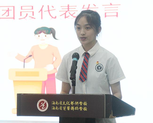 来自2021级四年制歌舞班的王钗同学作为新团员代表发表了感言。她表示,能够成为一名共青团员是自己一直以来的梦想和追求,在今后的学习和生活中,她将时刻牢记团员的职责与使命,严格要求自己,努力学习,积极参与团组织活动,争做一名合格的共青团员,为学校的发展和社会的进步贡献自己的力量。