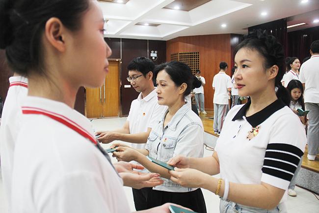 经过个人申请、班级团支部推荐、学校团总支审核上报,本次共有120名同学被光荣地批准加入中国共青团。何晓晖老师、程小琪老师、邓元景老师依次为全体新团员佩戴团徽、颁发团员证书。新团员们昂首挺胸,胸前的团徽熠熠闪光,脸上洋溢着成为一名共青团员的光荣与自豪。