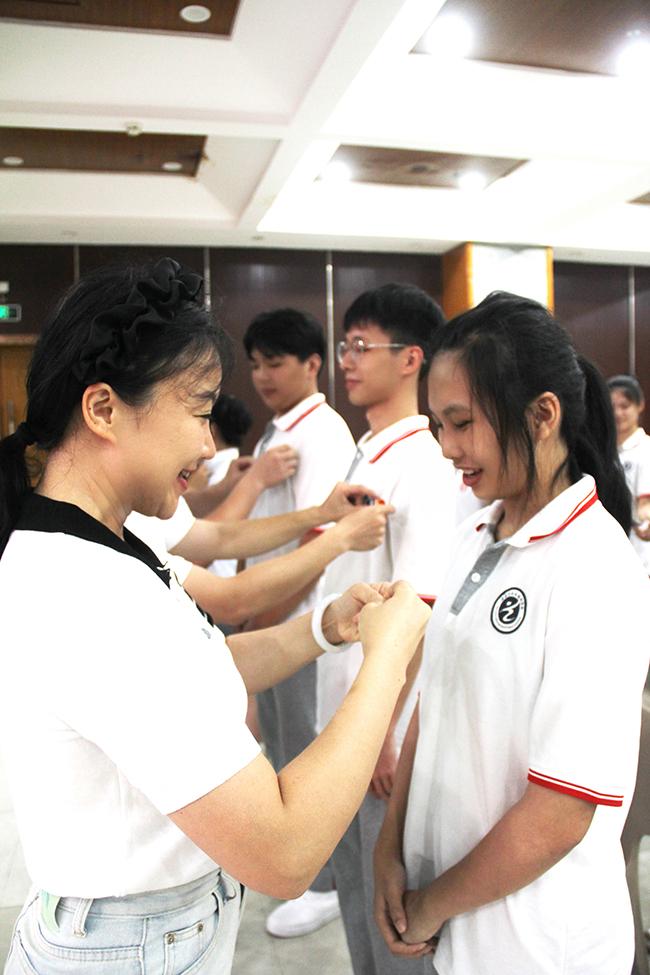 支委、学生科、团委领导为新团员佩戴团徽