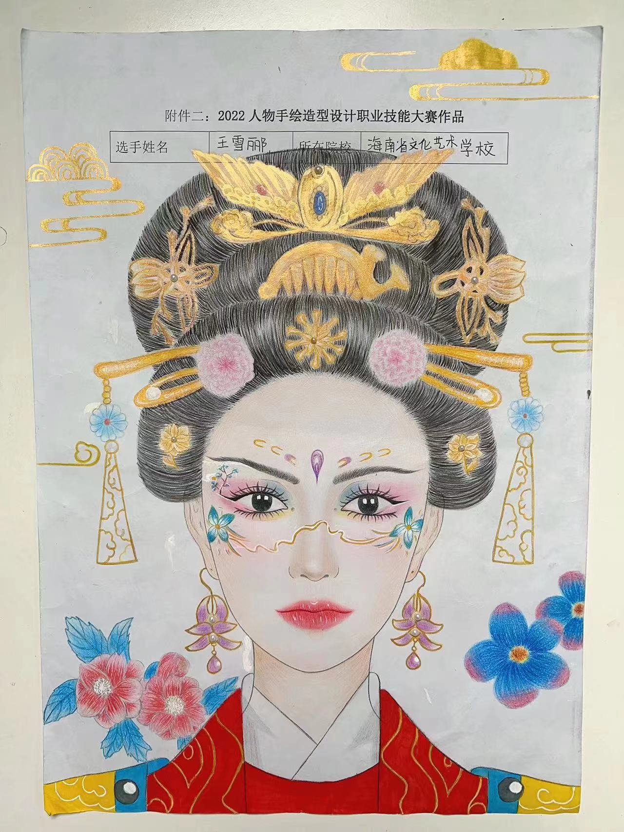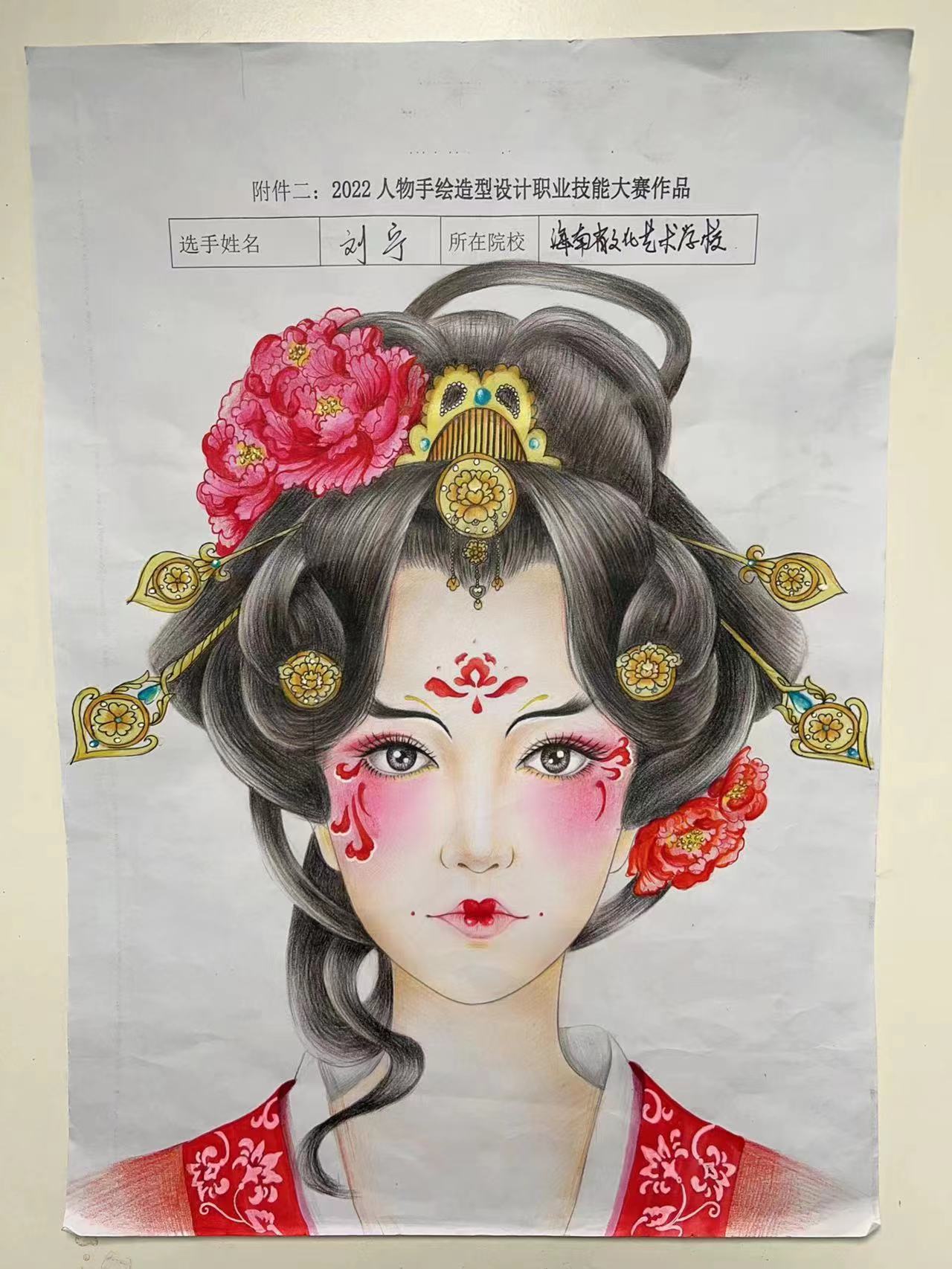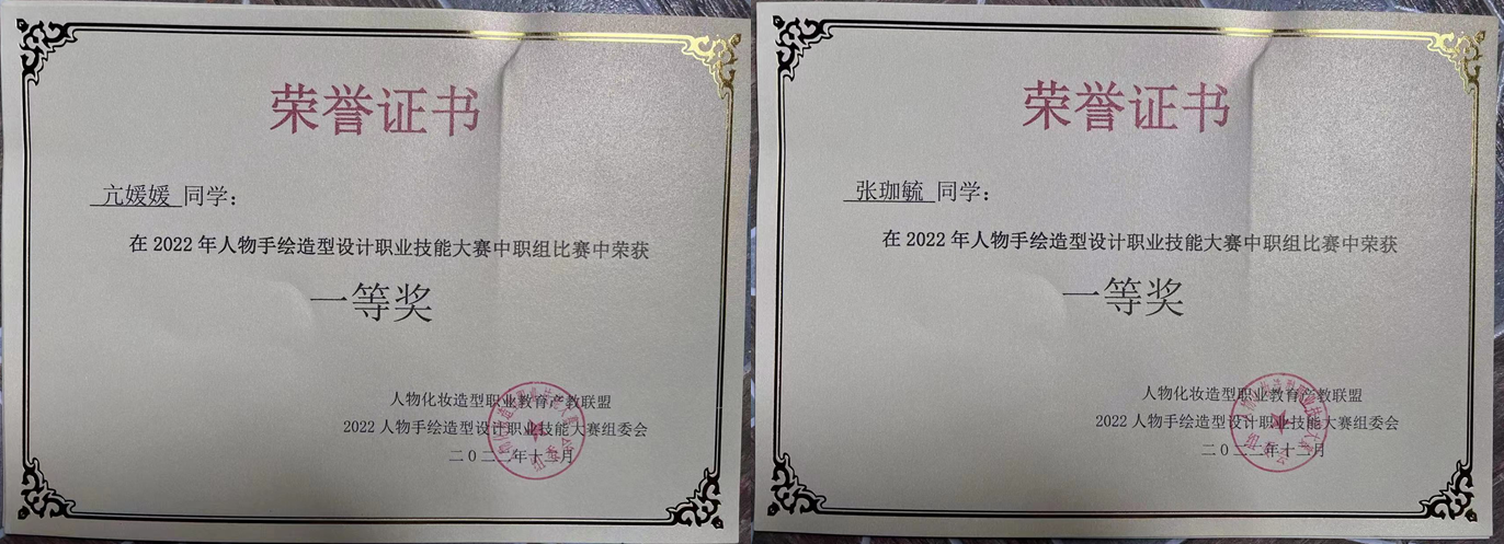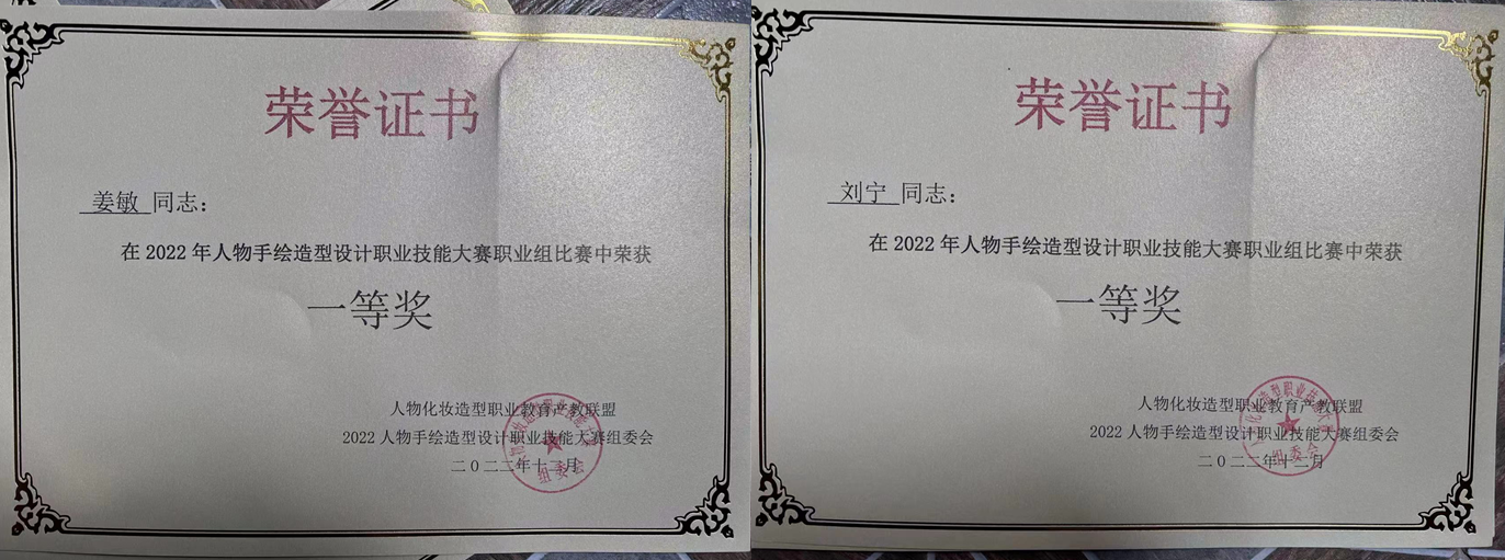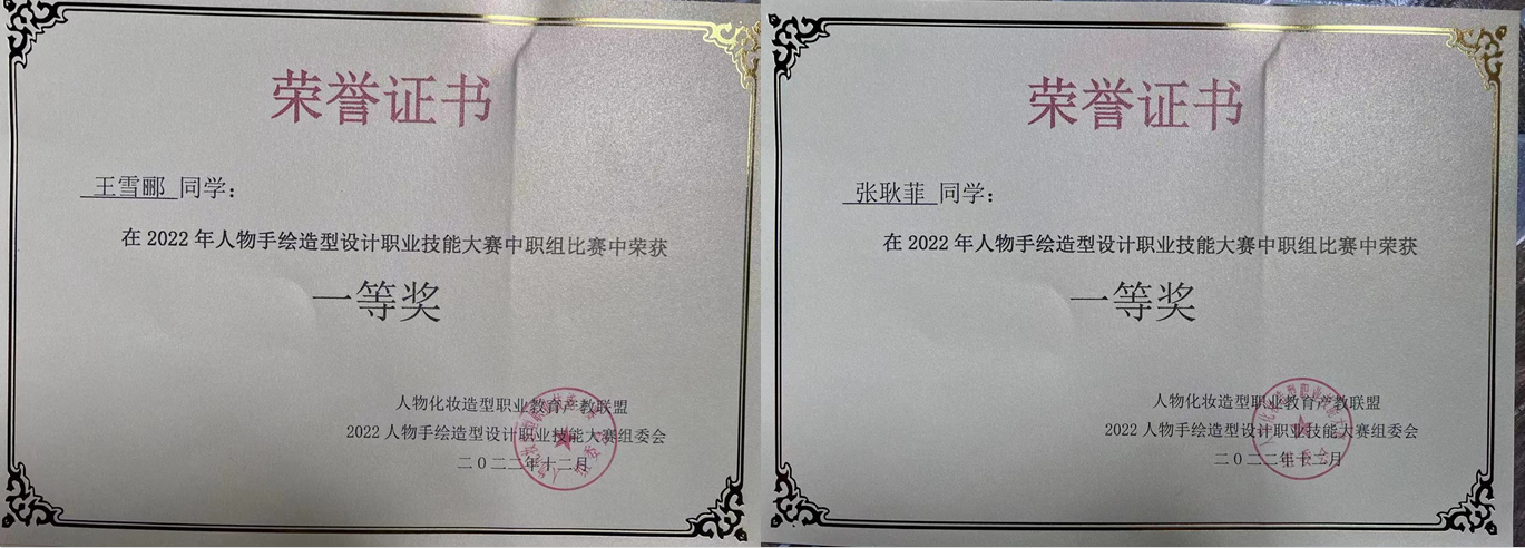 2022年,我校社会文化教研室骨干教师携本专业学生参加了由人物化妆造型职业教育产教联盟主办,教育部第三方评价组织北京色彩时代商贸有限公司承办的《中华之美·古风人物》人物手绘造型设计职业技能大赛。参赛的老师和学生们赛出了高风格,赛出了真水平,赛出了基本功,取得了优异的成绩。姜敏和刘宁两位老师荣获职业组比赛一等奖,亢媛媛、张珈毓、王雪郦、张耿菲四名学生荣获中职组比赛一等奖,这是对我校师生过硬的专业能力功底和良好的综合素养最有力地评价,充分展现了我校专业教学水平和教学成果。