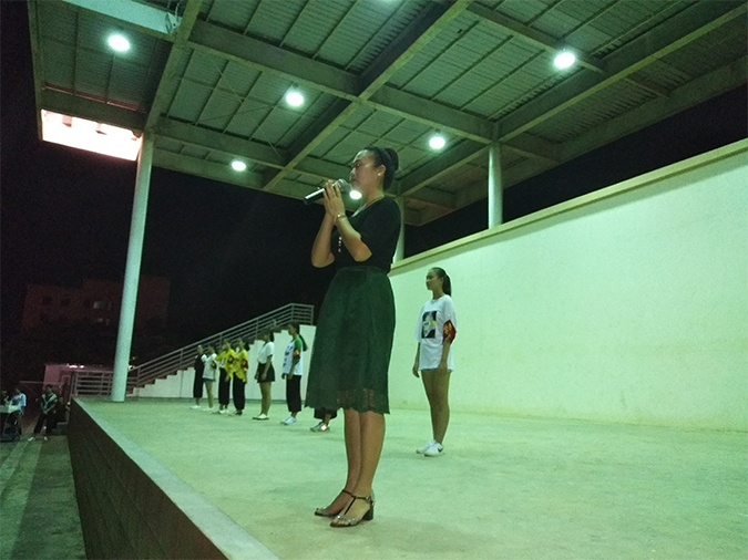 2017年9月17日晚上19:30分,学生科、校团委组织2017级新生在学校运动场上进行文明礼仪操培训,邀请群众艺术教研室宋镕汝老师授课,在学生干部的带领下,全体新生践行《中等职业学校学生公约》中的辨美丑,立形象。