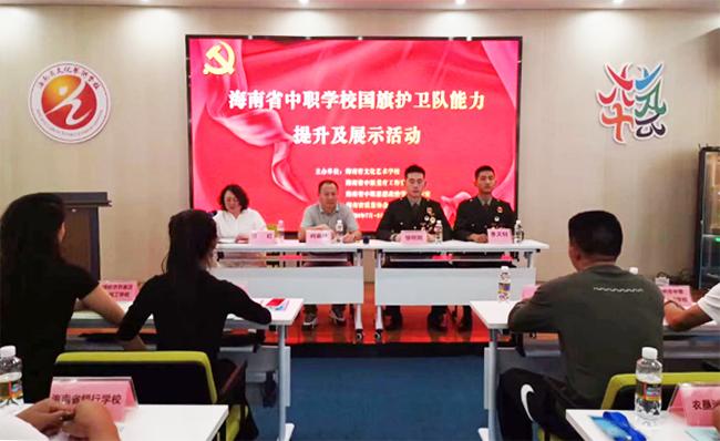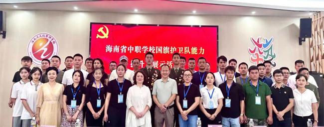 为深入贯彻党的二十大精神,认真落实教育部《关于全面实施学校美育浸润行动的通知》教体艺〔2023〕5号文件精神,为庆祝新中国成立75周年,弘扬爱国主义精神,增强中职学生的民族自豪感,同时展示海南省中职学校国旗护卫队的风采和训练成果,通过其规范的动作、庄重的仪式感培养中职学生的审美感知,提升国旗护卫队的整体水平,促进各中职学校之间的“美育+德育”工作交流与提高,根据海南省中职美育工作室2024年“美育润心进校园”活动计划,经教育厅职成教处批准,海南省中职美育工作室与海南省中职思想政治学科工作室共同策划,海南省中职学校国旗护卫队能力提升及成果展示交流活动在我校举办,第一阶段于7月4日至6日圆满完成对全省近40所中职学校升旗教官师资队伍培养,为下一阶段规范和提升各校国旗护卫队水平、增强中职学生的爱国情感和审美感知打下基础。
