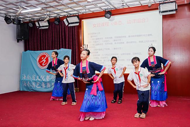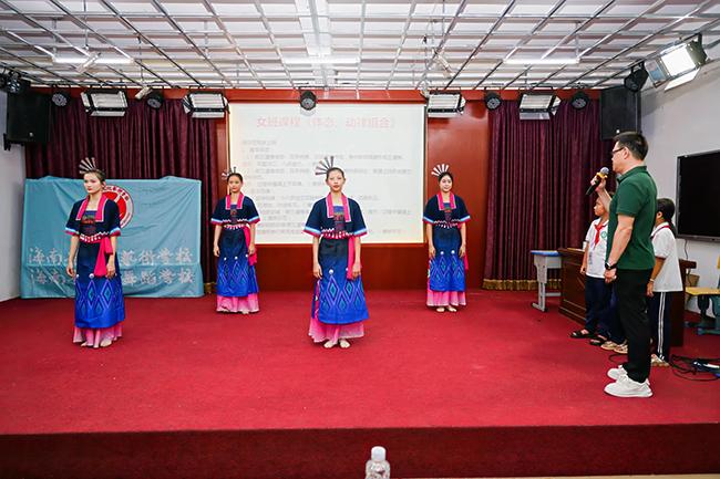潭门镇中心小学学生上台学习黎族舞蹈表演