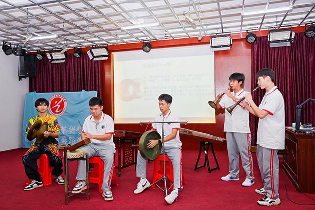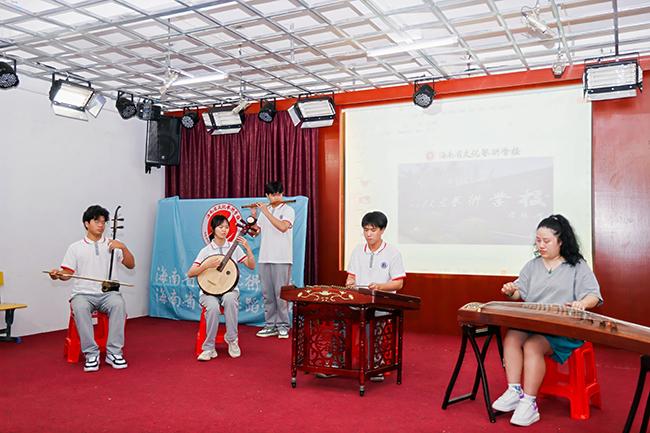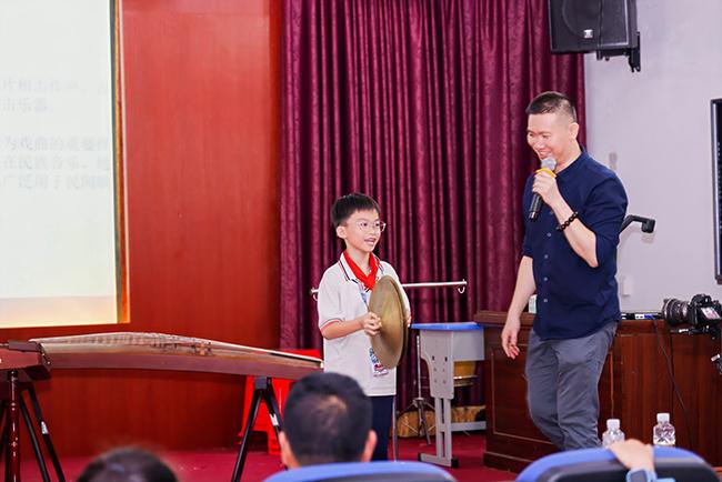 中国乐器讲座课堂上,琴声悠扬,笛声婉转,我校教师向孩子们讲解了民乐作品创作、配器以及海南八音等中国民族音乐相关知识,并通过小合奏作品演奏,让他们深入感受了中华民族传统音乐的深厚底蕴。