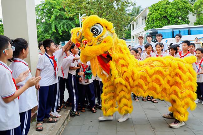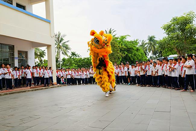 此外,我校学生还在潭门镇中心小学举行了一场精彩的海南非遗舞狮表演,向孩子们展现了舞狮艺术的独特魅力。