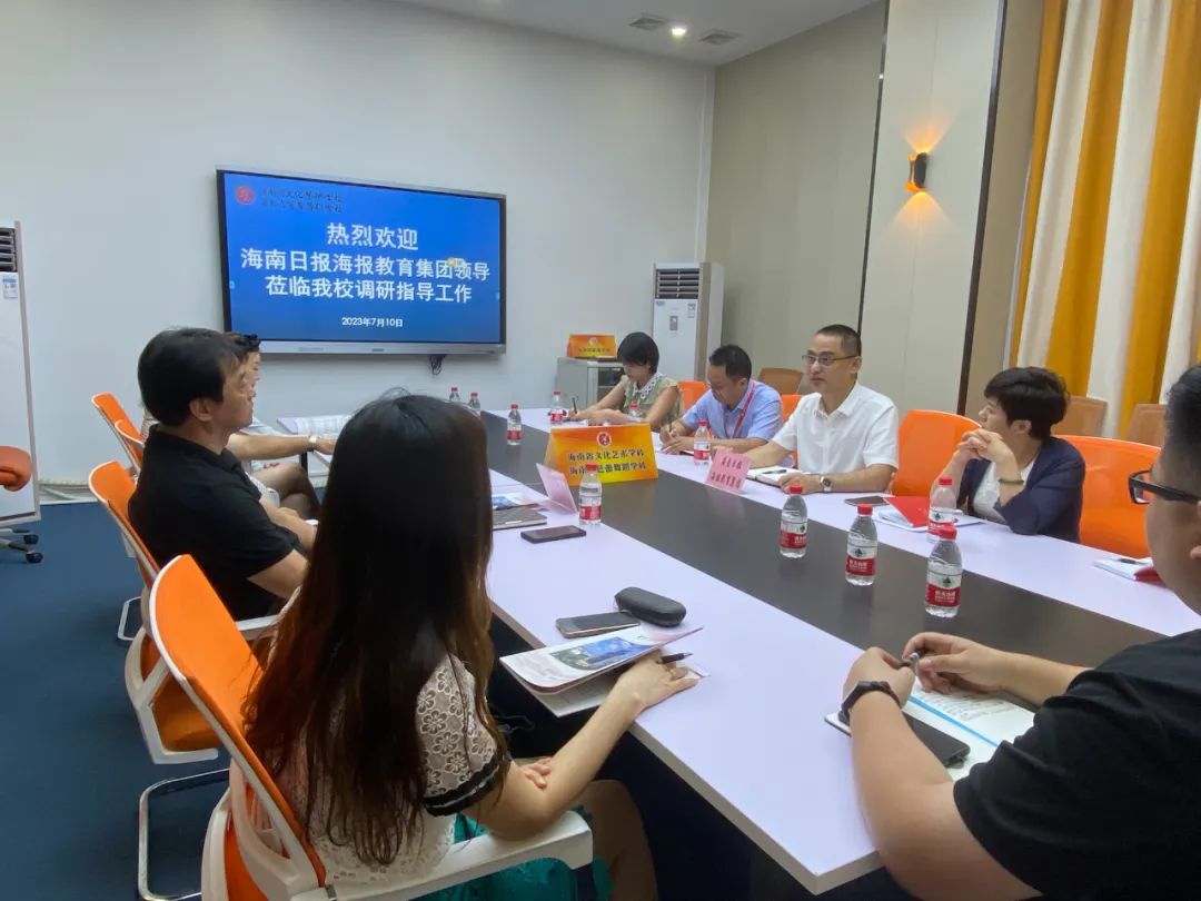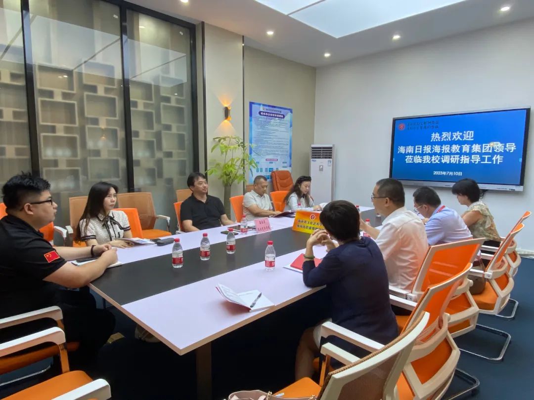 7月10日上午,海南日报海报教育集团总裁郭凌霄,海南日报海报教育集团学术委员会办公室主任林振一行莅临我校座谈,并与我校党总支书记、校长莫青桥等就双方重点合作项目进行了深入交流,并达成广泛共识。
