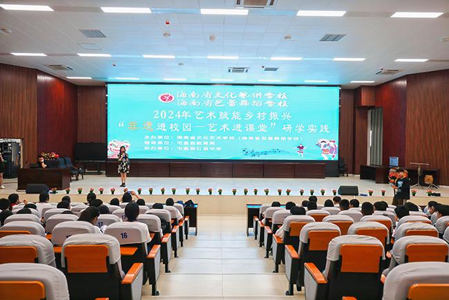 为深入贯彻党的“二十大”精神,积极响应国务院颁布的《中华人民共和国非物质文化遗产法》和海南省教育厅等12部门《关于推进中小学生研学旅行的实施意见》文件要求,6月12日至14日,在我校实训指导科的组织下,我校师生赴屯昌县开展了2024年艺术赋能乡村振兴“非遗进校园——艺术进课堂”研学实践活动。此次活动作为我校“艺术赋能乡村振兴”系列活动,旨在弘扬中华优秀传统文化,在乡镇校园中普及海南非遗文化艺术知识,激发青少年学生对艺术的向往与追求,为助力乡村振兴凝聚精神力量。