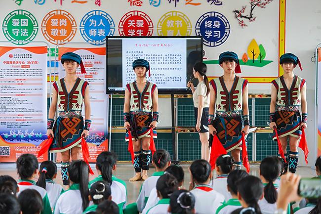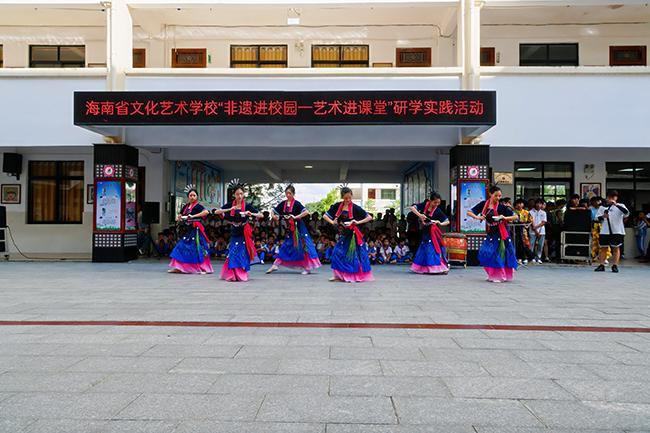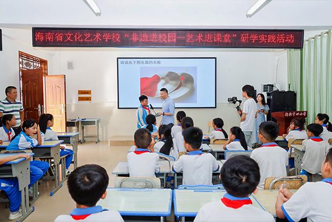 活动期间,我校师生走进了屯昌县南坤中心小学、屯昌县新兴中心小学、屯昌县红旗中学,开展了一系列丰富多彩的非遗艺术教学表演活动。同时,我校师生还在当地学校积极开展了招生宣传工作。师生们向当地师生详细介绍了我校的办学特色、专业设置和教学成果等,充分展示了我校在艺术教育领域的专业水平和教学实力。