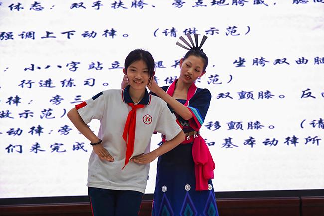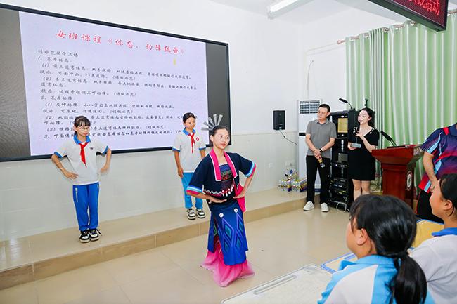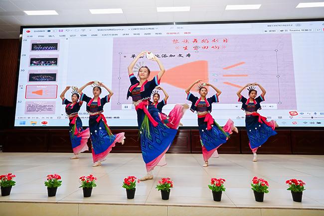 在黎族舞蹈表演课堂上,我校舞蹈教研室的学生们身穿精美的黎族服饰,为当地学生展示了黎族舞蹈的别样风情。伴随着我校教师的生动讲解,学生们认真学习黎族舞蹈的基本动作和节奏,聆听黎族舞蹈的历史故事。
