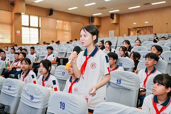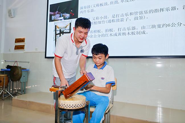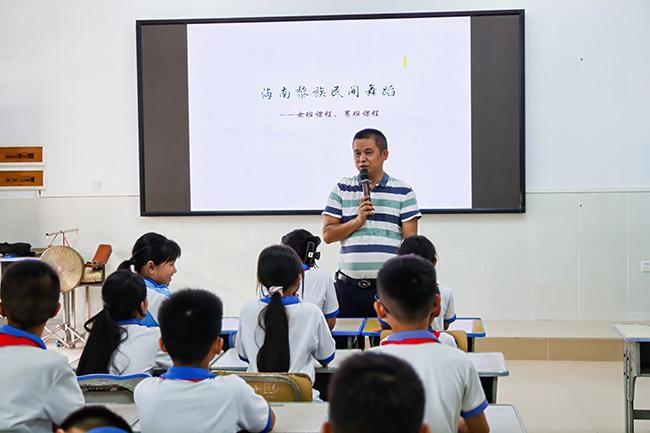 “老师,这段曲子讲的是什么故事?”“这种乐器叫什么名字?”课堂内响起一阵阵热烈的讨论声,学生们对海南八音的相关知识产生了浓厚的兴趣,纷纷举手踊跃提问。