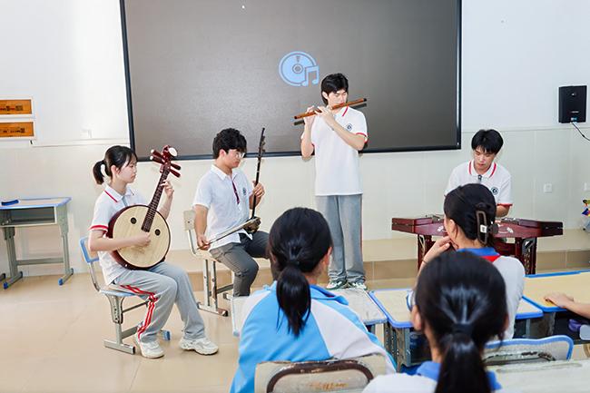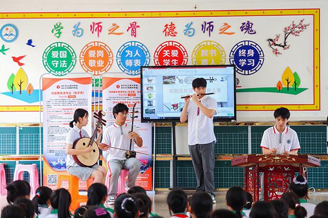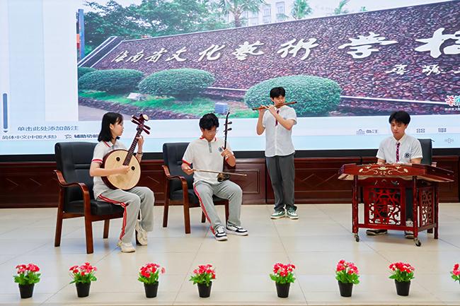 我校师生在屯昌县红旗中学开展中国乐器讲座课堂