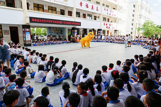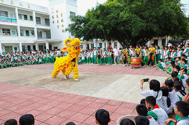 我校学生还为当地师生带来了精彩的海南非遗舞狮表演,默契的配合和生动的表演赢得了在场观众的阵阵掌声。