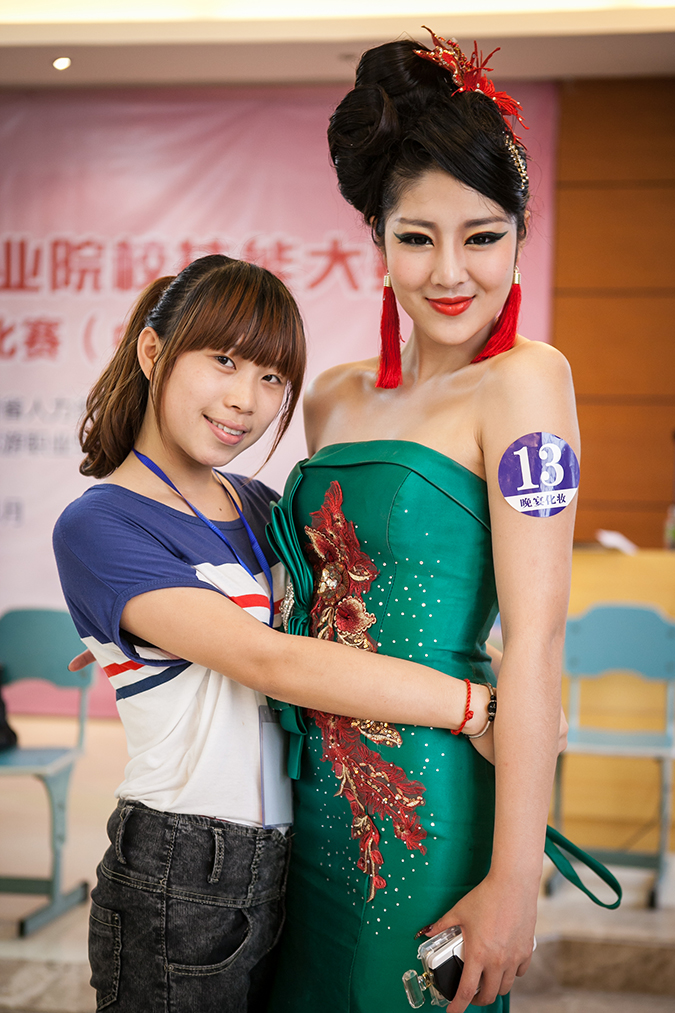 12级三年制形象设计班学生颜义蓉获晚宴化妆组二等奖,指导教师:姜敏、徐振达