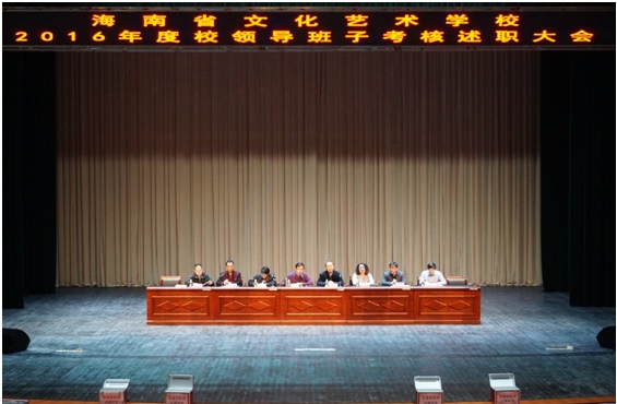 2月15日上午,我校2016年度领导班子述职大会在新落成的实训剧场隆重召开。省文体厅第二考核组的5位领导出席述职大会。