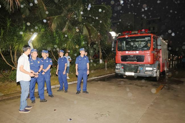 消防车现场待命(陈帅 摄)