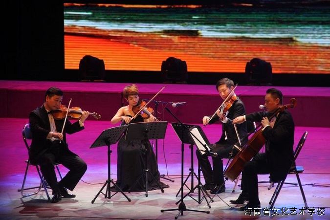 大美海南,八方同庆,在这唯美的季节里,由海南省人民政府主办,海南省文化广电出版体育厅、中国交响乐发展基金会承办的“中国交响乐峰会暨海南省交响音乐周”并纪念海南建省办经济特区三十周年,天津交响乐团弦乐四重奏于4月16日晚上在我校实训大剧场隆重上演。