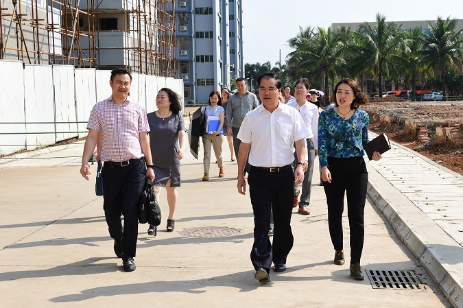 3月5日下午,省文体厅林光强厅长和厅办公室主任杨武、组织人事处处长陈宇宣、账务处处长徐玲、艺术处处长葛云峰、社文处处长肖晖等处室负责人一行7人,在校领导张艳、汪红、王枢、邓群坚的陪同下,莅临我校进行视察调研并与校领导班子及中层领导干部进行了座谈。林厅长一行先后视察了琼剧教学楼、实训综合楼、剧场、体育场等基础建设,沿途观看舞蹈、琼剧等专业上课情况,并对师生亲切慰问。