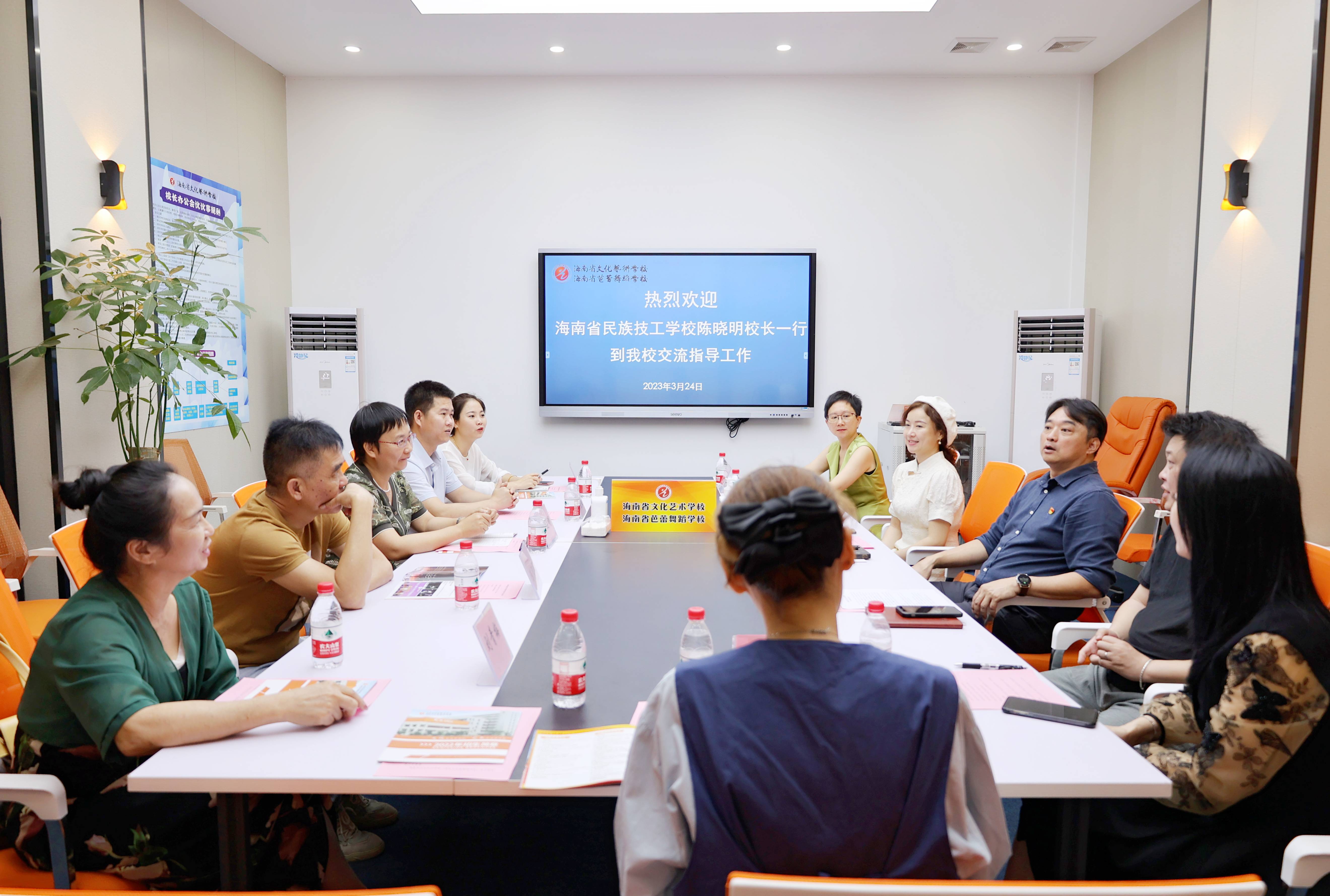 为了加强校际信息交流,发挥兄弟学校间相互学习、相互促进的作用,3月24日,海南省民族技工学校校长陈晓明,副校长郭教业,教务科科长陈沉沉,民族舞蹈教师刘青梅,音乐教师许乔乔,舞蹈教师杨颖一行到我校交流学习。我校党总支书记、校长莫青桥,艺术团团长何磊,教务科主要负责人程小琪,舞蹈教研室主任黄娜,音乐教研室副主任陈宜共同参加,两校开展交流座谈会,会议由教务科主要负责人程小琪主持。