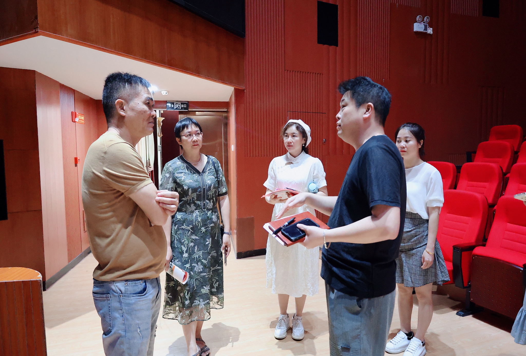 座谈结束后,在我校艺术团团长何磊、教务科主要负责人程小琪的陪同下,陈校长一行兴致勃勃地参观了我校实训剧场、戏曲教学楼、舞蹈教学楼等区域,并对我校的教学环境和浓厚的校园文化氛围给予了充分肯定。