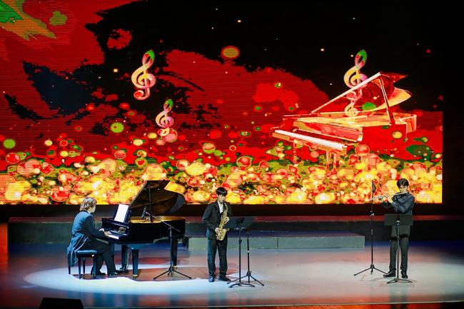 演奏者:18级六年制器乐班 冯永派(长笛)、王诗智(萨克斯管)、甘黄飞(钢琴)